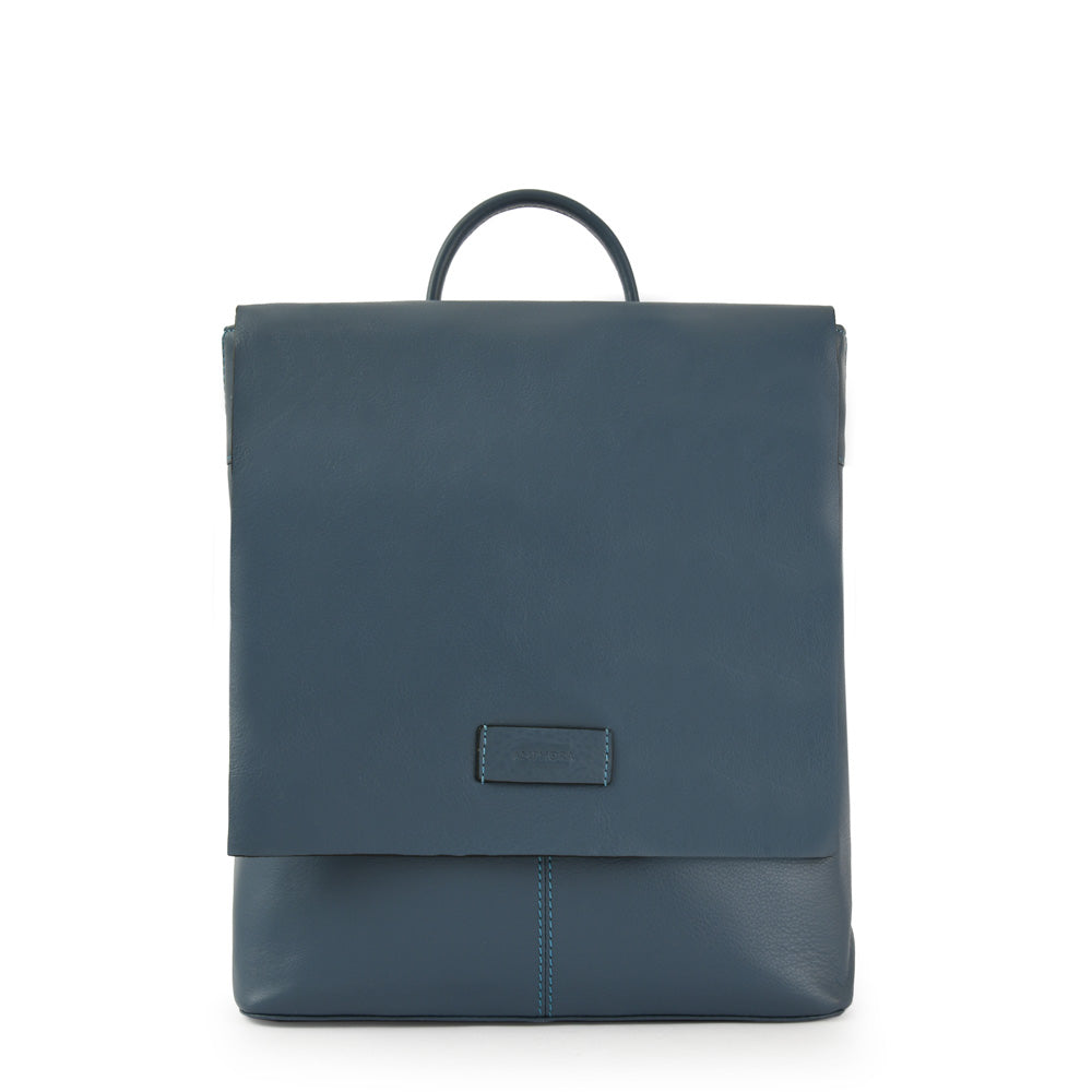 Mochila parana cuero con tapa mediana celeste