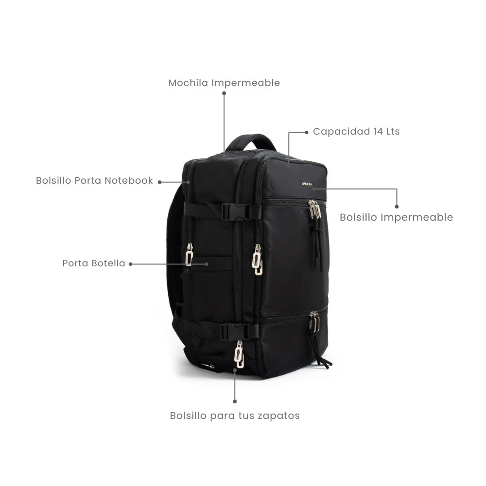 Viaja con estilo y comodidad con la mochila de viaje Vesta Travel bag by Amphora, diseñada para cumplir con los requisitos de tamaño de cabina. Con una capacidad de 14 litros, es perfecta para escapadas o para usar en el día a día. Es impermeable y cuenta con una organización inteligente para guardar tu botella, zapatos y notebook. Además es ideal para transportar todo lo que necesitas con sus múltiples bolsillos en la parte delantera y trasera. ¿Lo mejor? Su diseño ergonómico, con correas ajustables y espalda acolchada y anti transpirable.