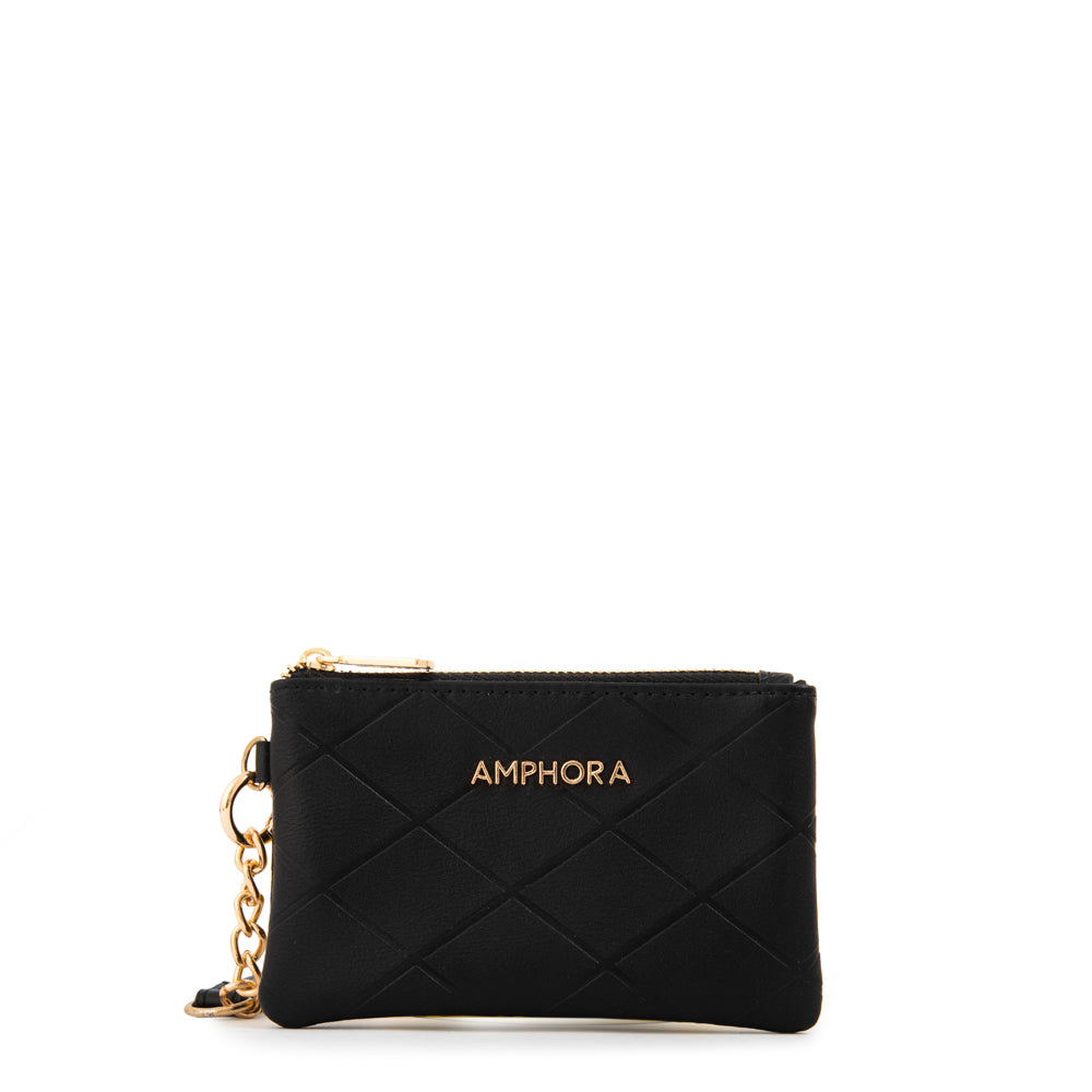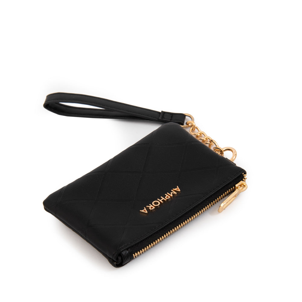 Essential and timeless. El monedero Suiza negro es ese básico infaltable que combina diseño y comodidad. Confeccionado en ecocuero liso, cuenta con un cierre seguro y un colgante de ecocuero que le da un plus de estilo.