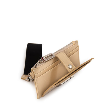 Light & stylish! El tarjetero Carina en beige es el equilibrio perfecto entre diseño funcional y minimalismo. Su confección en nylon con herrajes en niquelado le da un look moderno, mientras que su bolsillo frontal permite un acceso rápido a tus tarjetas. Su cierre y colgante aseguran comodidad en cada uso. Chic & on-the-go!