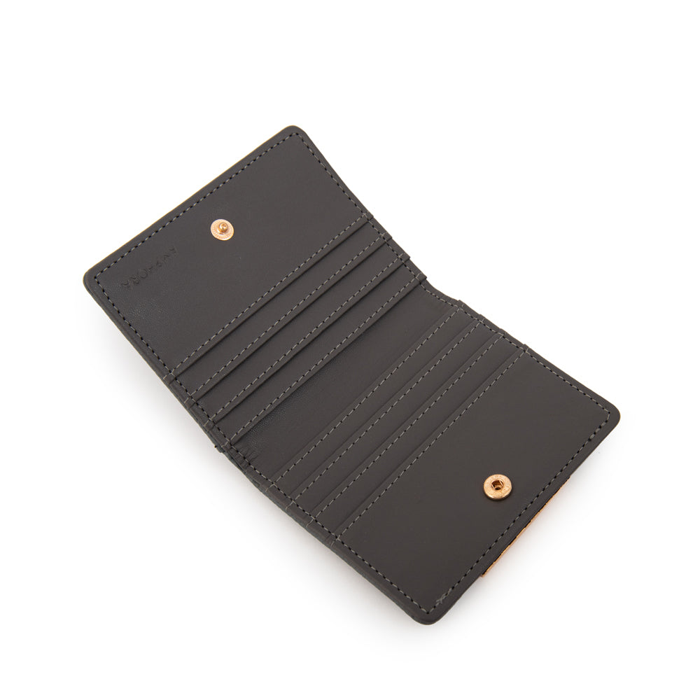 Denim touch! El tarjetero Naty en azul denim es la fusión de lo casual y lo funcional. Confeccionado en ecocuero graneado con detalles en dorado claro, su diseño con broche mantiene todo en su lugar sin perder estilo. Con 10 cm de alto y 12 cm de ancho, es el complemento ideal para cualquier ocasión. Casual & trendy!